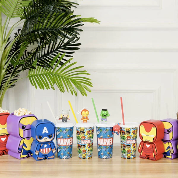 Take these awesome cup and popcorn box to watch Avengers 4: EndGame! The cup is featuring a series printing of adorable comic character designs, with a plastic straw, screw top as well as cute Iron Man, Thor, Spiderman and Hulk on the top, which can be also taken as phone stand or decorations.