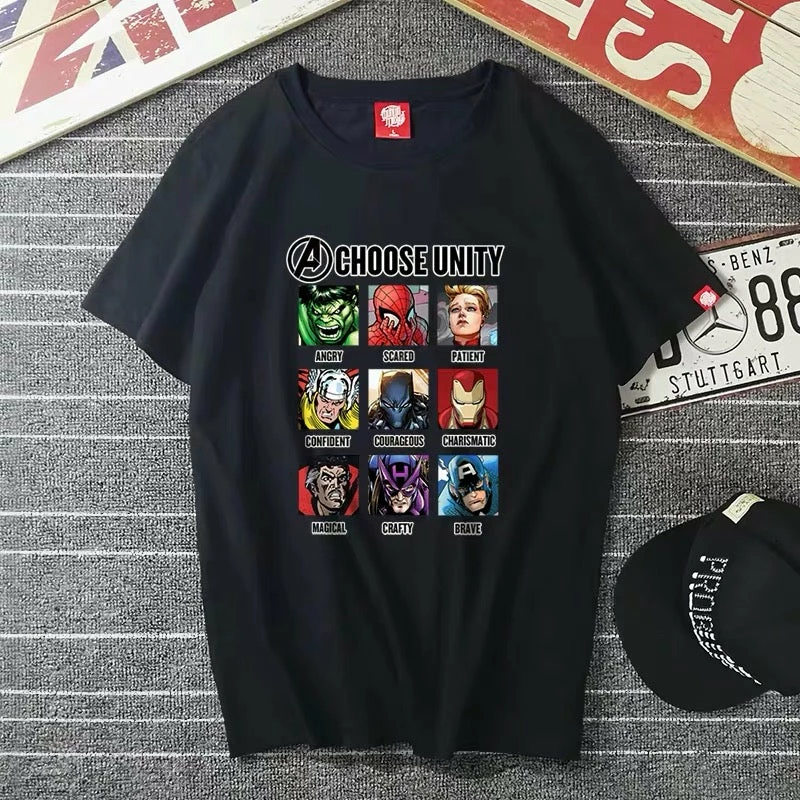 Angry, scared, patient, confident, courageous, charismatic, magical, crafty, brave – collect all superheroes’ facial expressions via this tee.