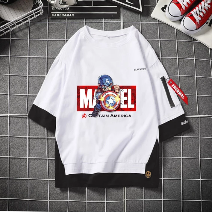 - Marvel logo in the center with hanged Spider-Man/Deadpool/Captain America