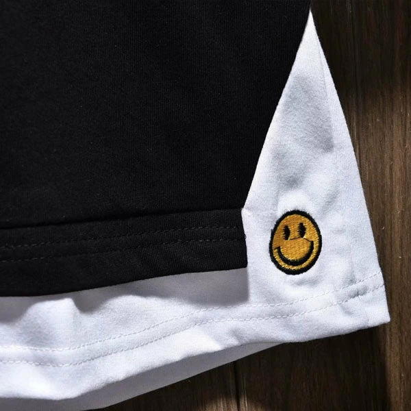 - Layered to fake two piece tee