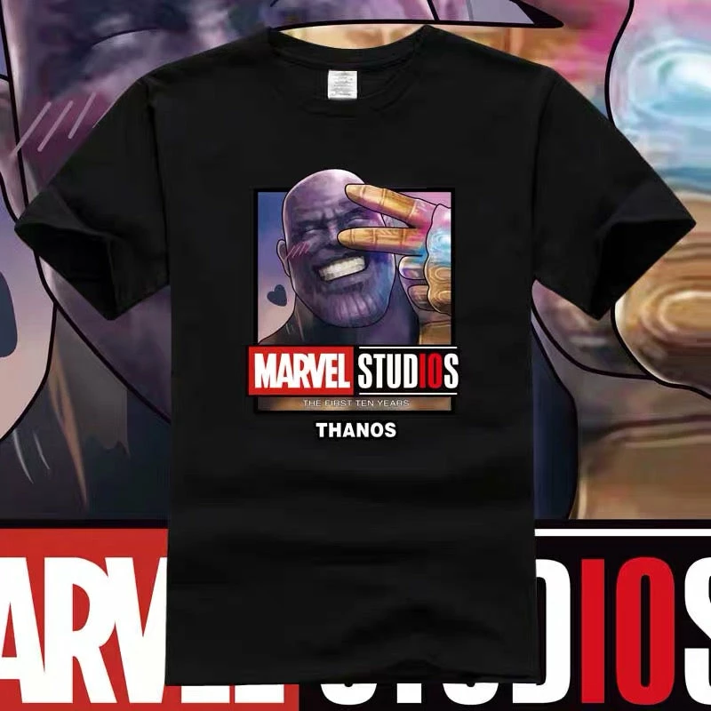Classic Thanos character with kawaii facial expressions to show a different superhero. This is the First Ten Years T-shirt collection and this is something we can definitely wear to show off and let everybody know who is your love.
