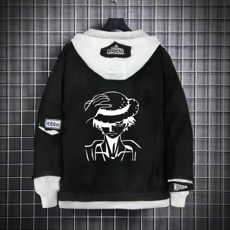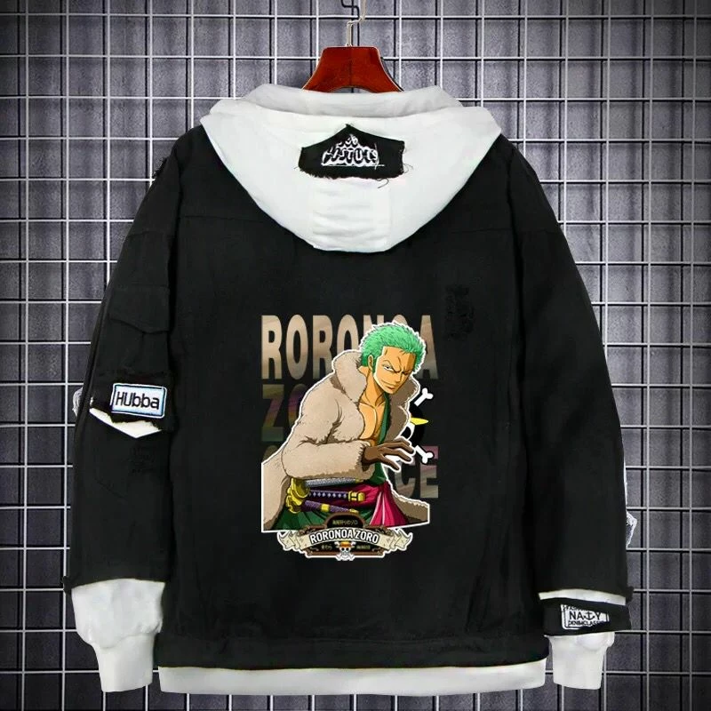 - Selected denim fabric with printed One Piece classical symbols from the anime at back.