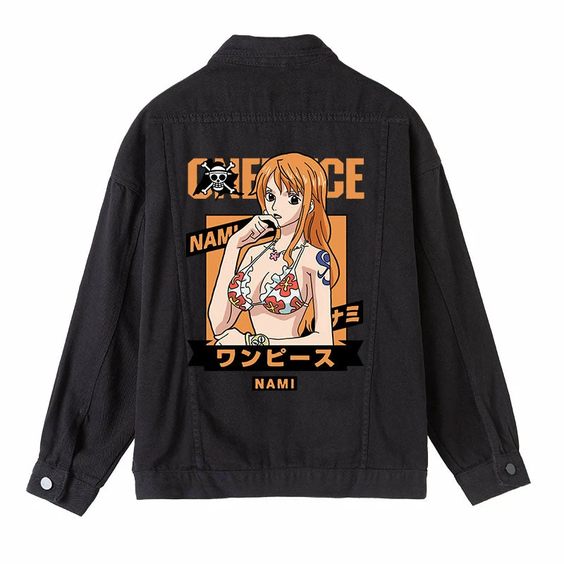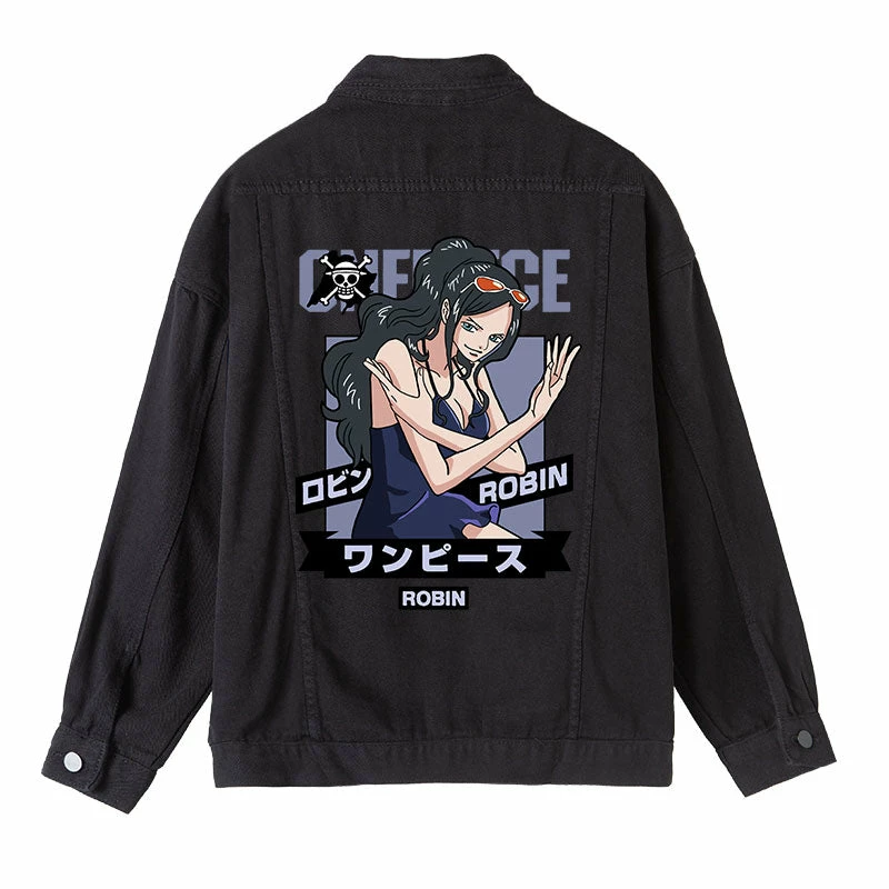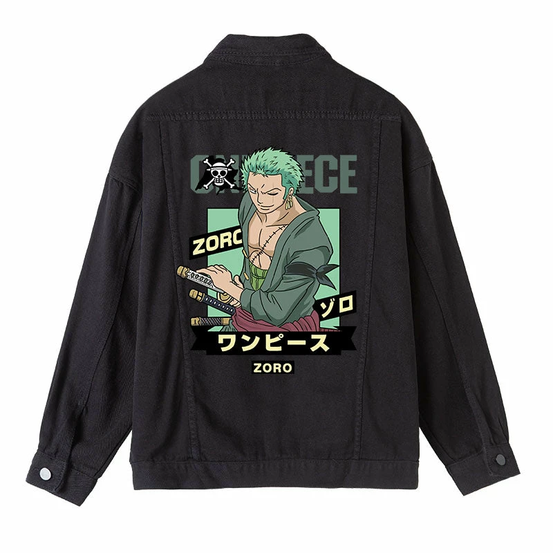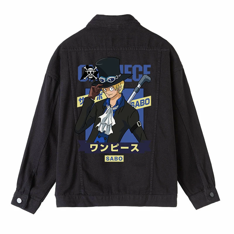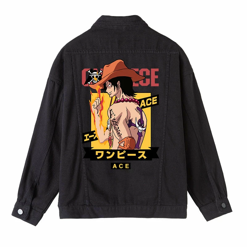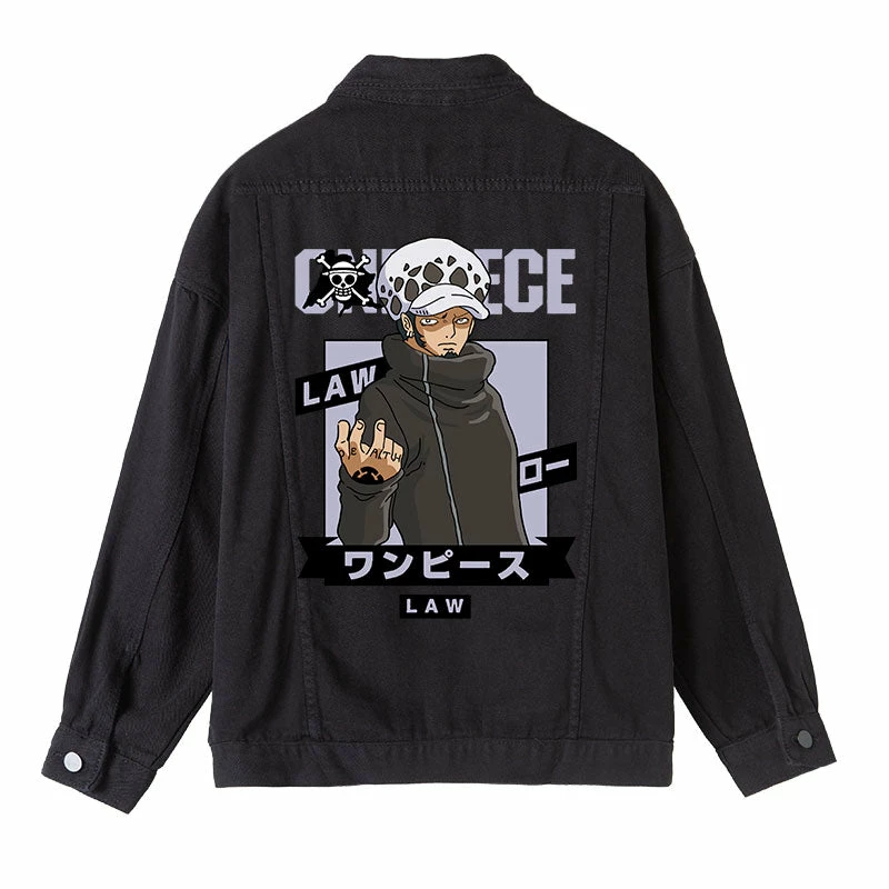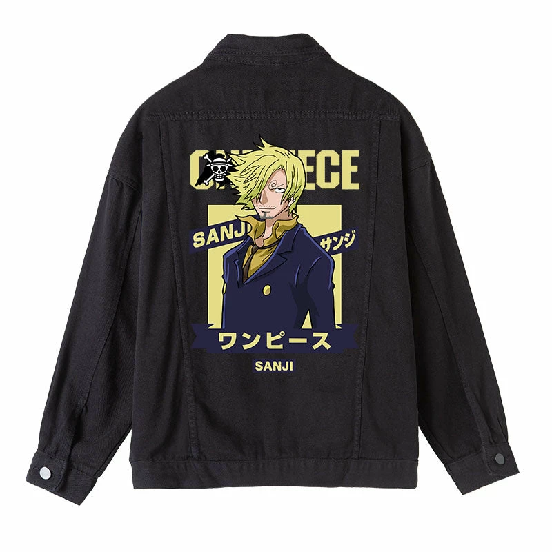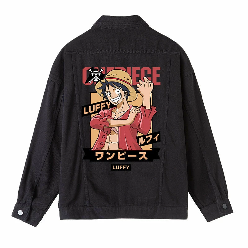 Circumtoy One Piece Character Printing Black Denim Jacket