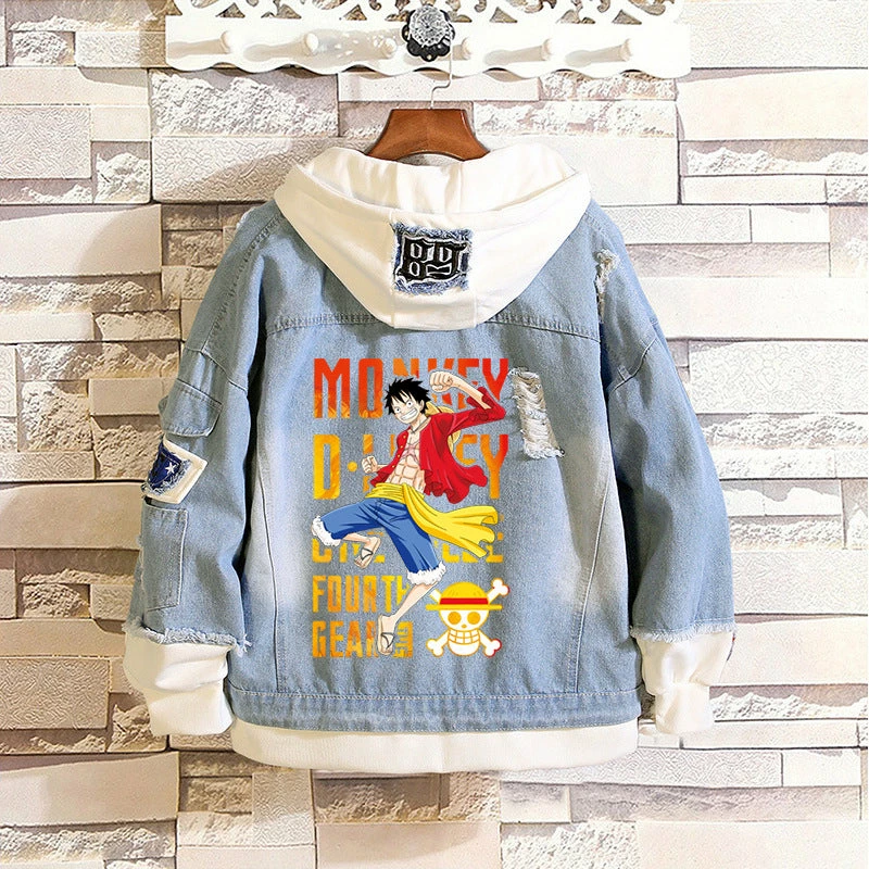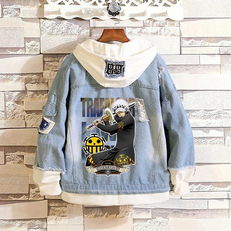 Selected denim fabric with printed One Piece logo or main characters at back, it feels so soft and comfortable. Stylish design combined both hoodie and jacket, it will definitely make you the most stunning star in the street.