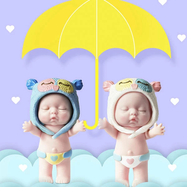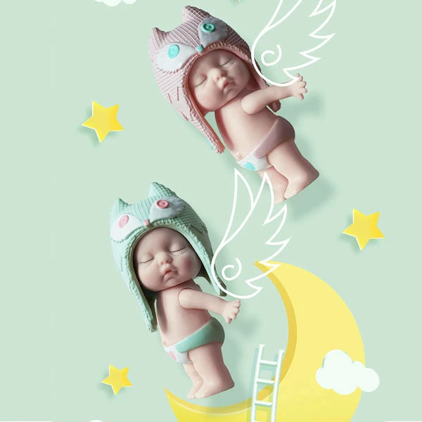 Bieber is newborn who is always sleeping. His head and hands can be rotated 360 degrees. His hats can be removed or changed.