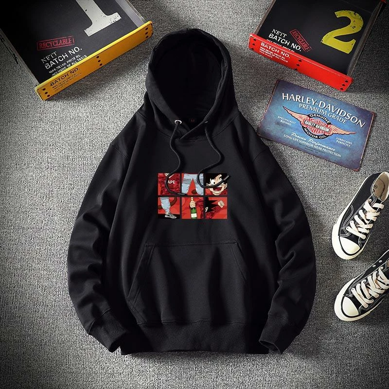 Kangaroo front pocket, drawstring hood and brushed inside.