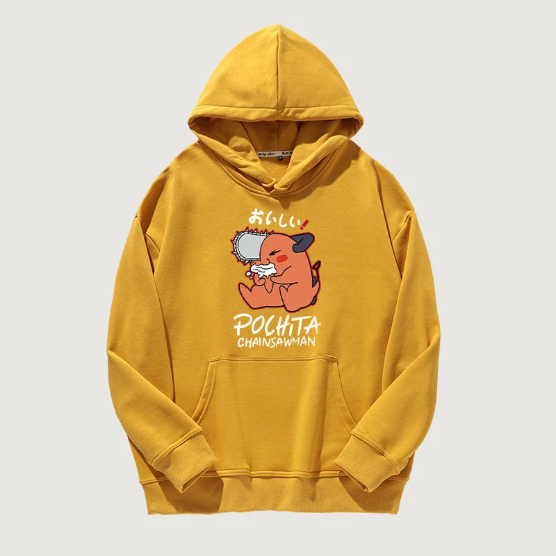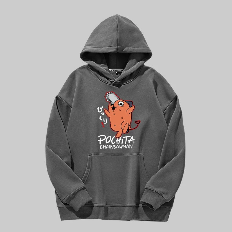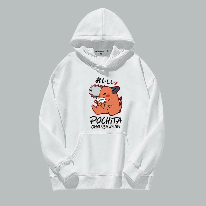 Cute Pochita from Chainsaw Man printed on front center. Each color has a different Pochita.