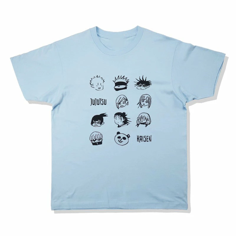 Featuring each main character from Jujutsu Kaisen and listed in a grid and chibi style.