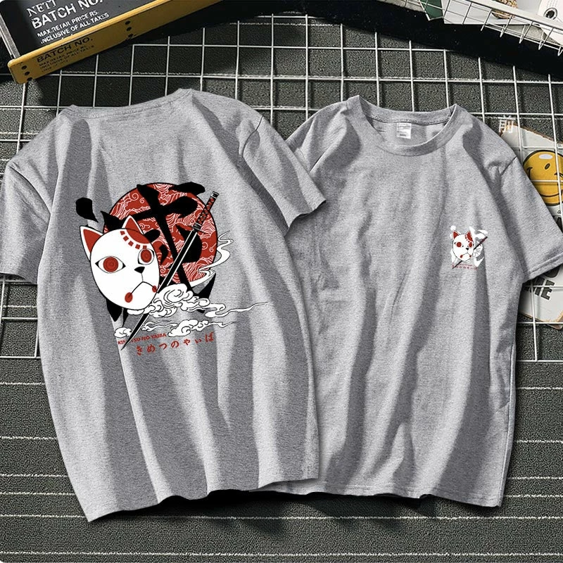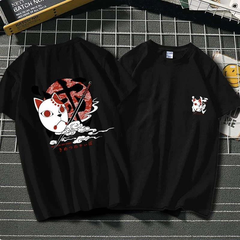 Fox mask and the words “Destroyer of Demons” carved on the blade are totally unforgettable elements in Demon Slayer. This t-shirt features the printing of either symbol for all fans of Demon Slayer who love charming designs and minimalist details.