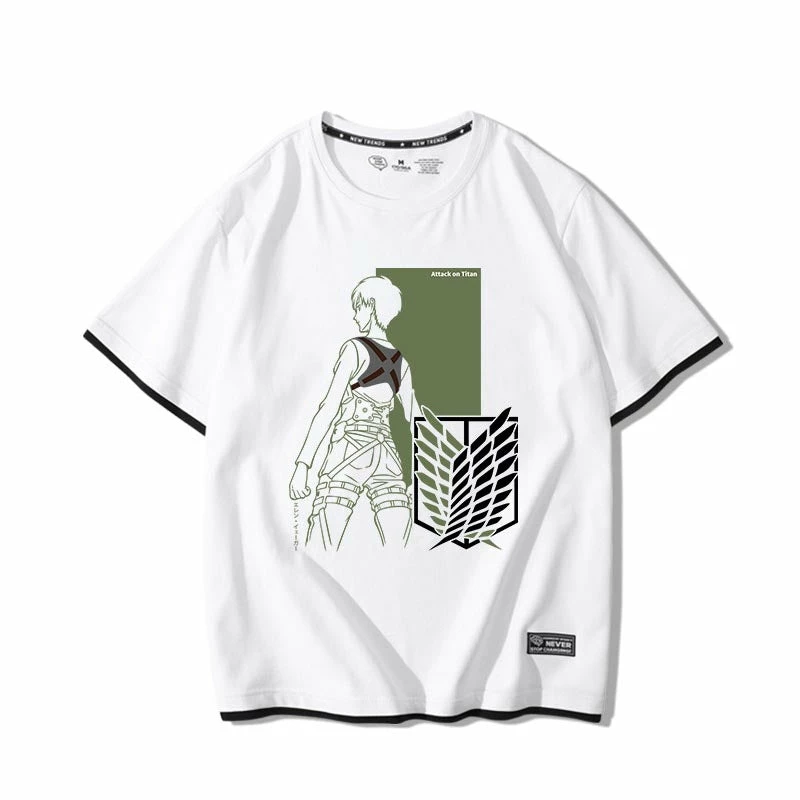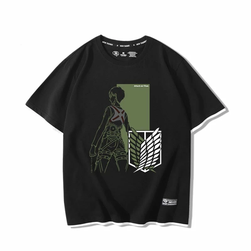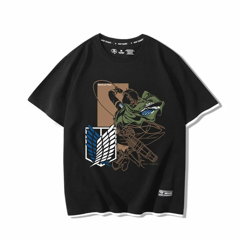 Featuring the battle silhouettes of Levi Ackerman and Eren Yeager from Attack on Titan anime.