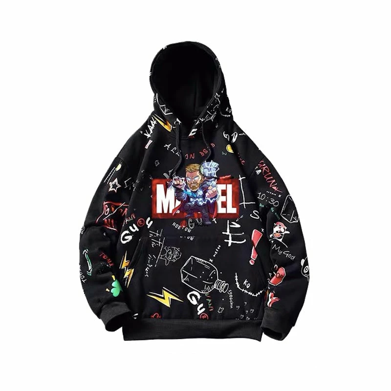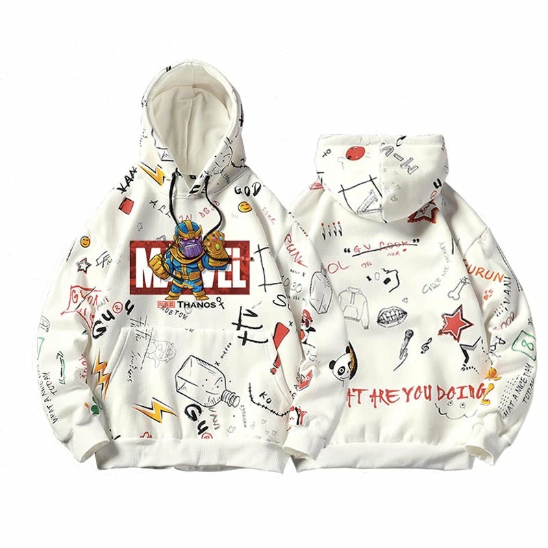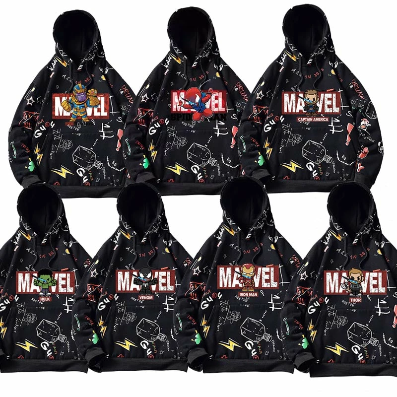 Even Thanos wouldn’t want this sweater to be a part of the vanished. This comfy hoodie features a Marvel logo and one Avenger chest hit and all cute icons and symbols covered both front and back.