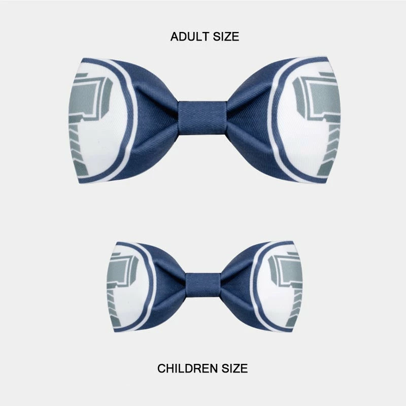 The adult bow tie is 4.5 x 2.3 inches and the strap is adjustable from 12 inches up to 19 inches.