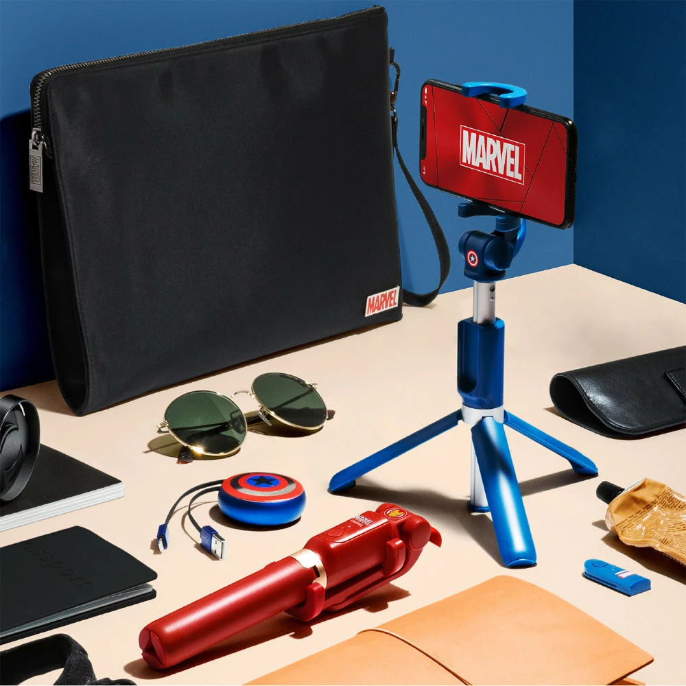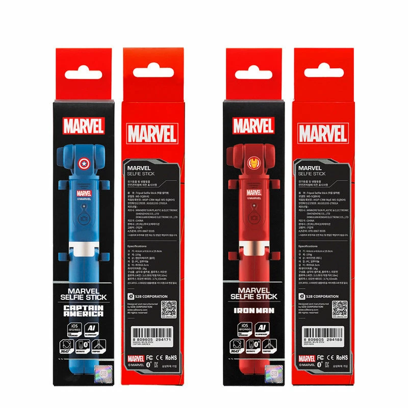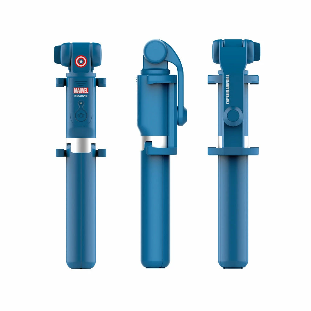 - With your phone positioned further away, you need a straightforward method of telling the software to take the image without having to stretch needlessly into the distance to reach your device’s screen. Te officially licensed Marvel selfie stick features bluetooth technology, allowing you to do just that, so you can press the button positioned on snap-on remote control to capture the photo. You can also use the button to capture video as well.