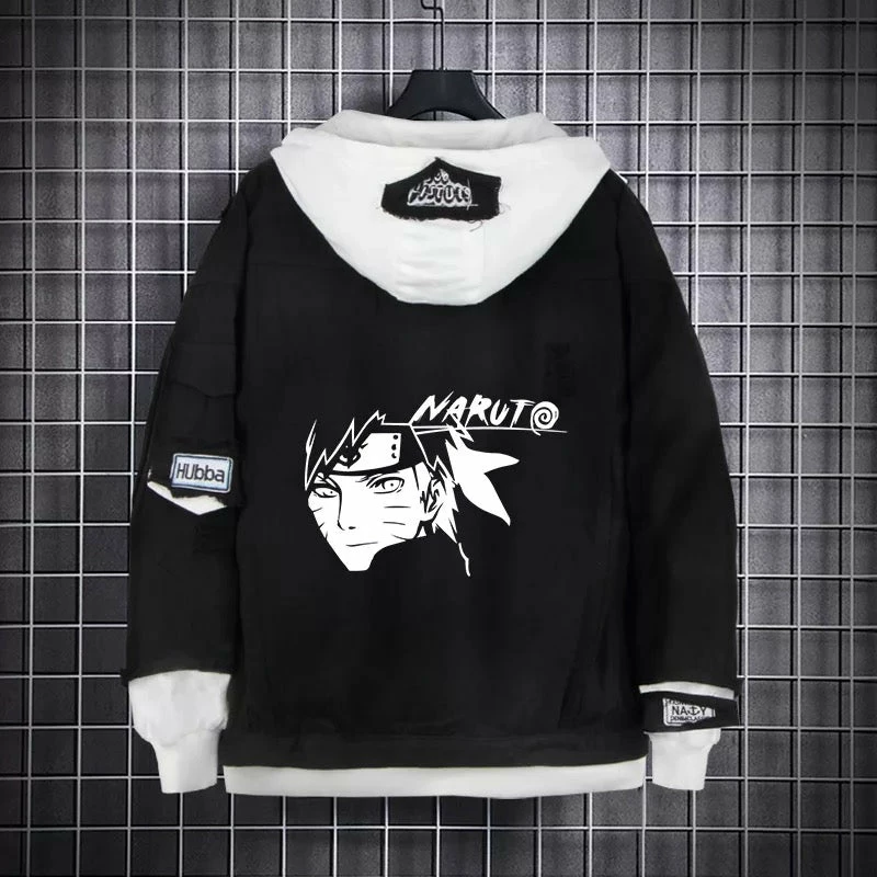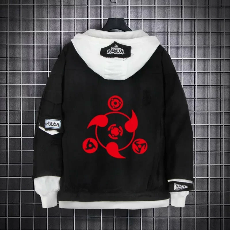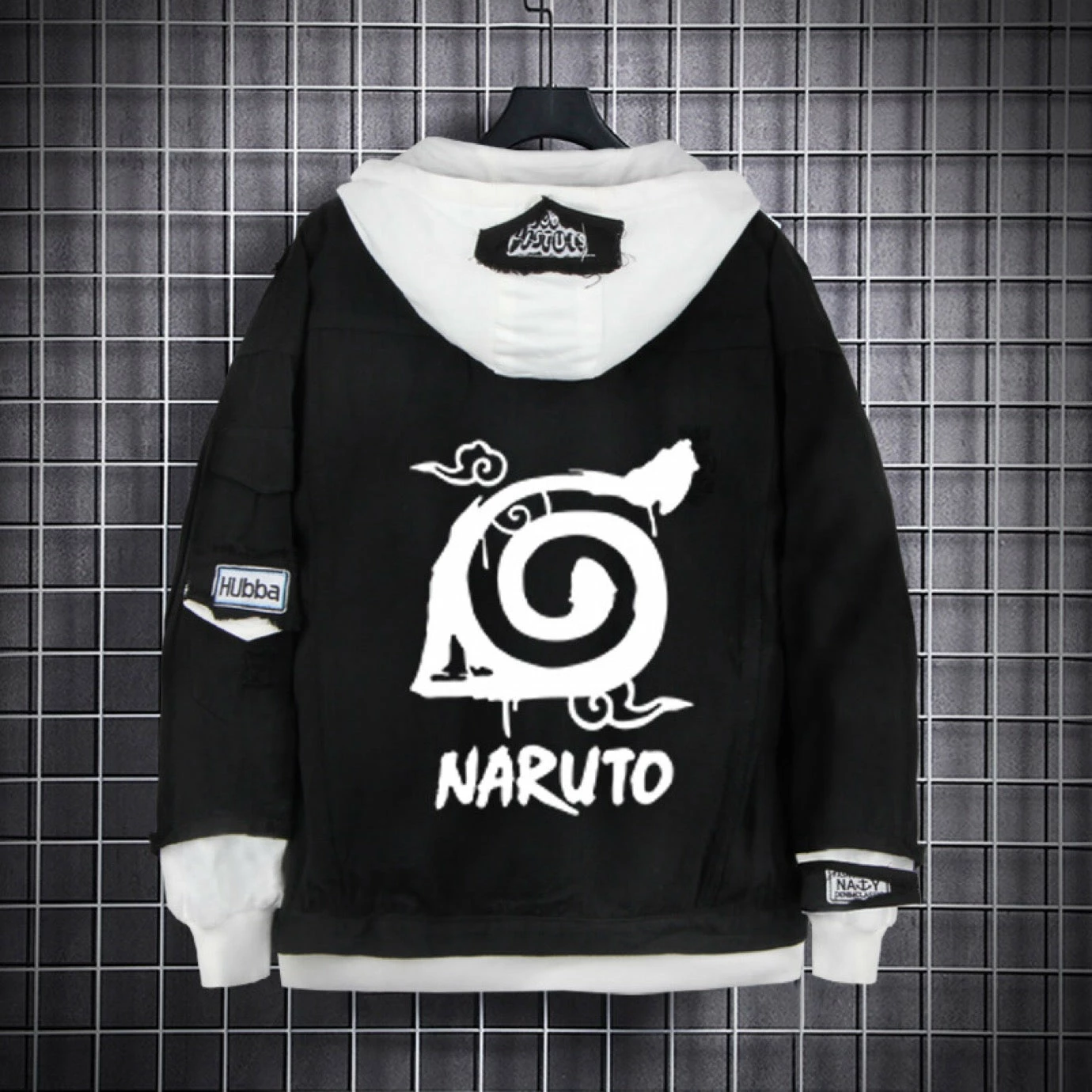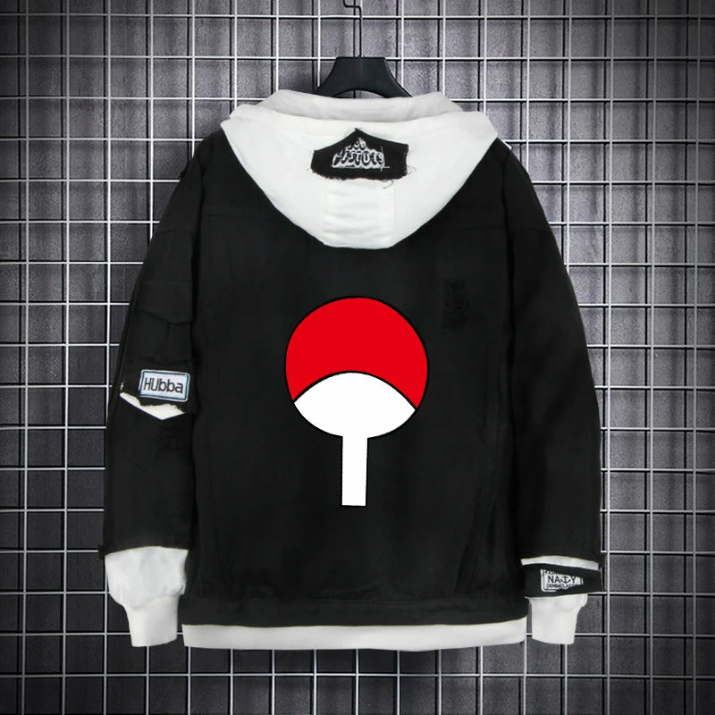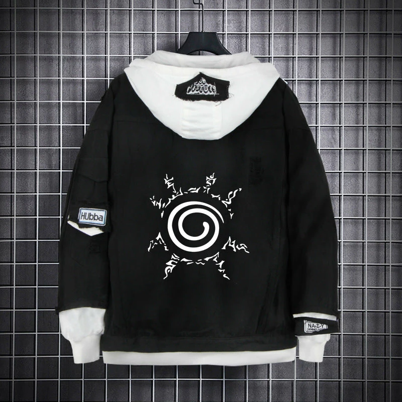 - Selected denim fabric with printed Naruto classical symbols from the anime at back.