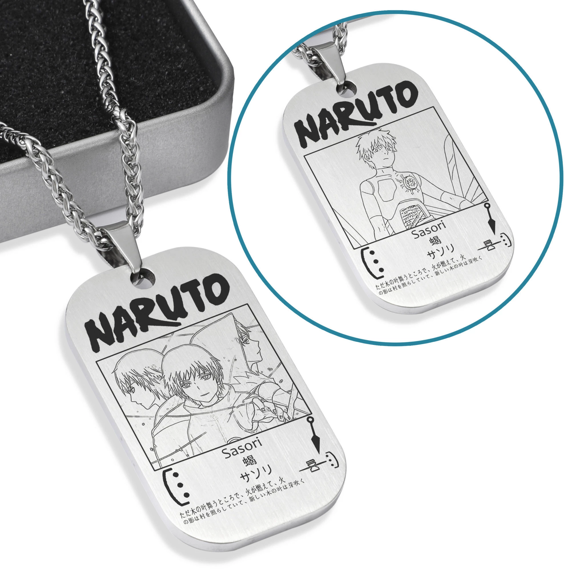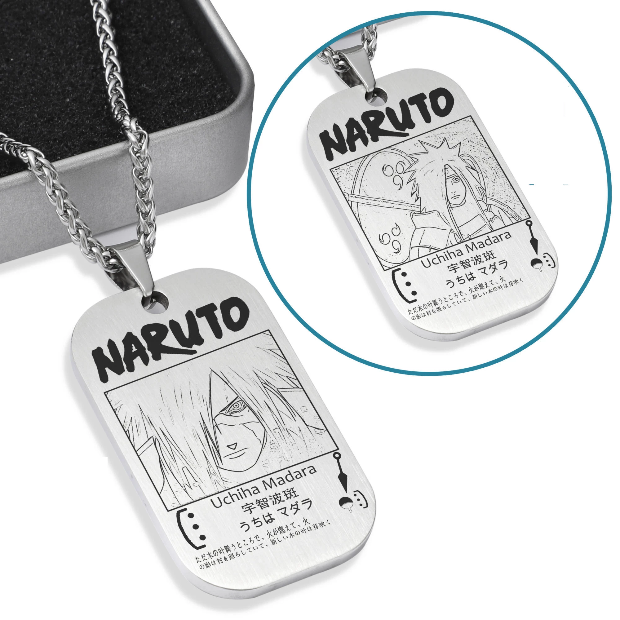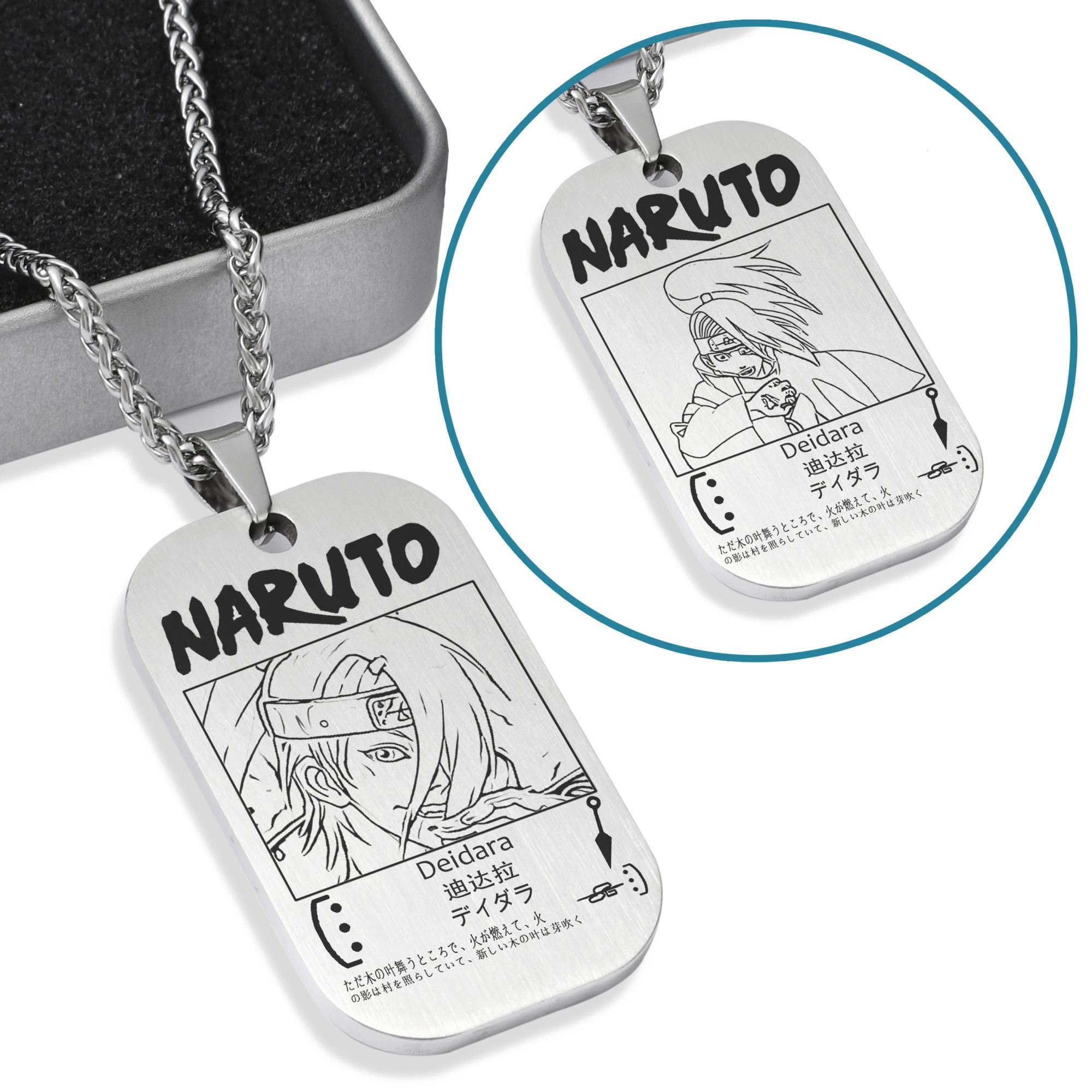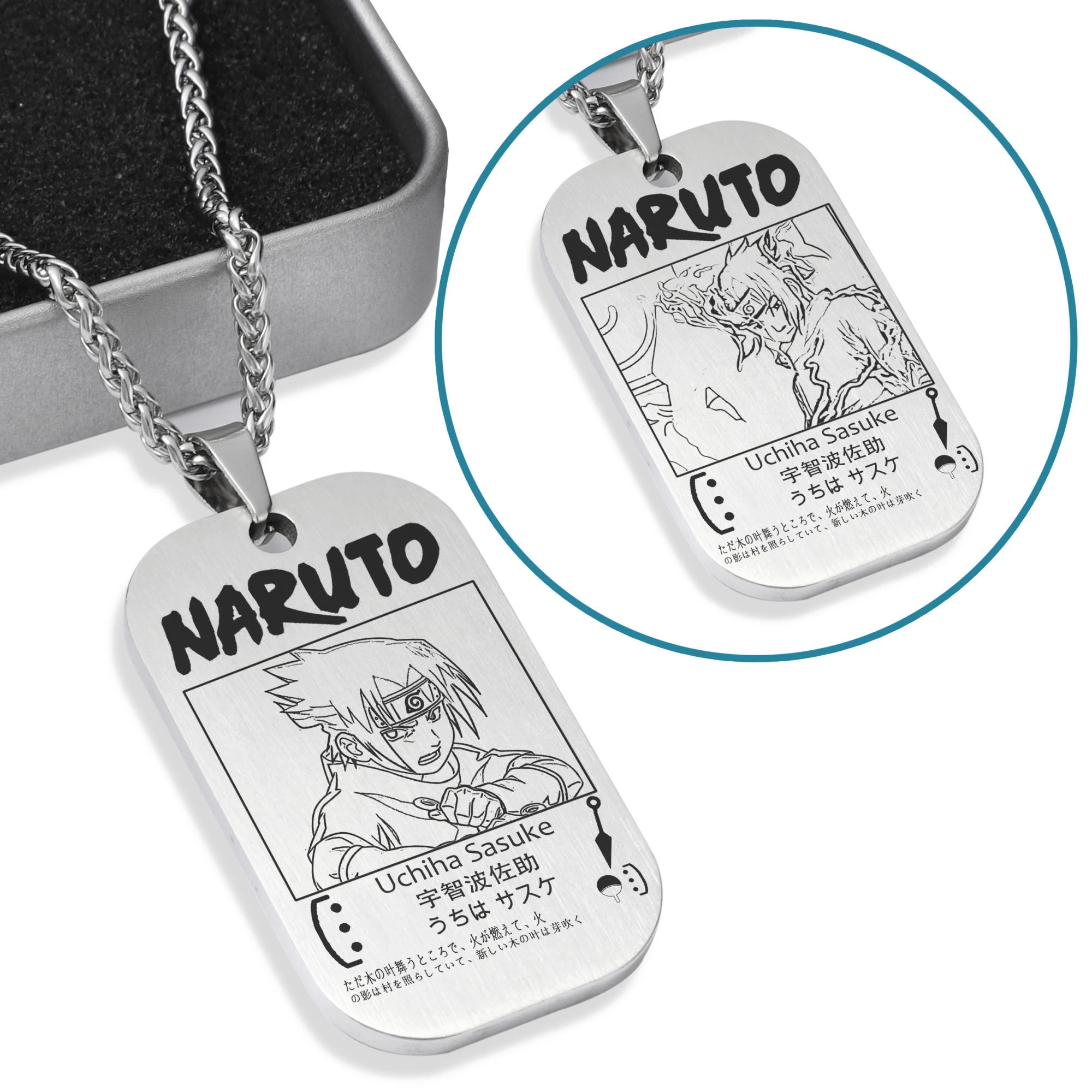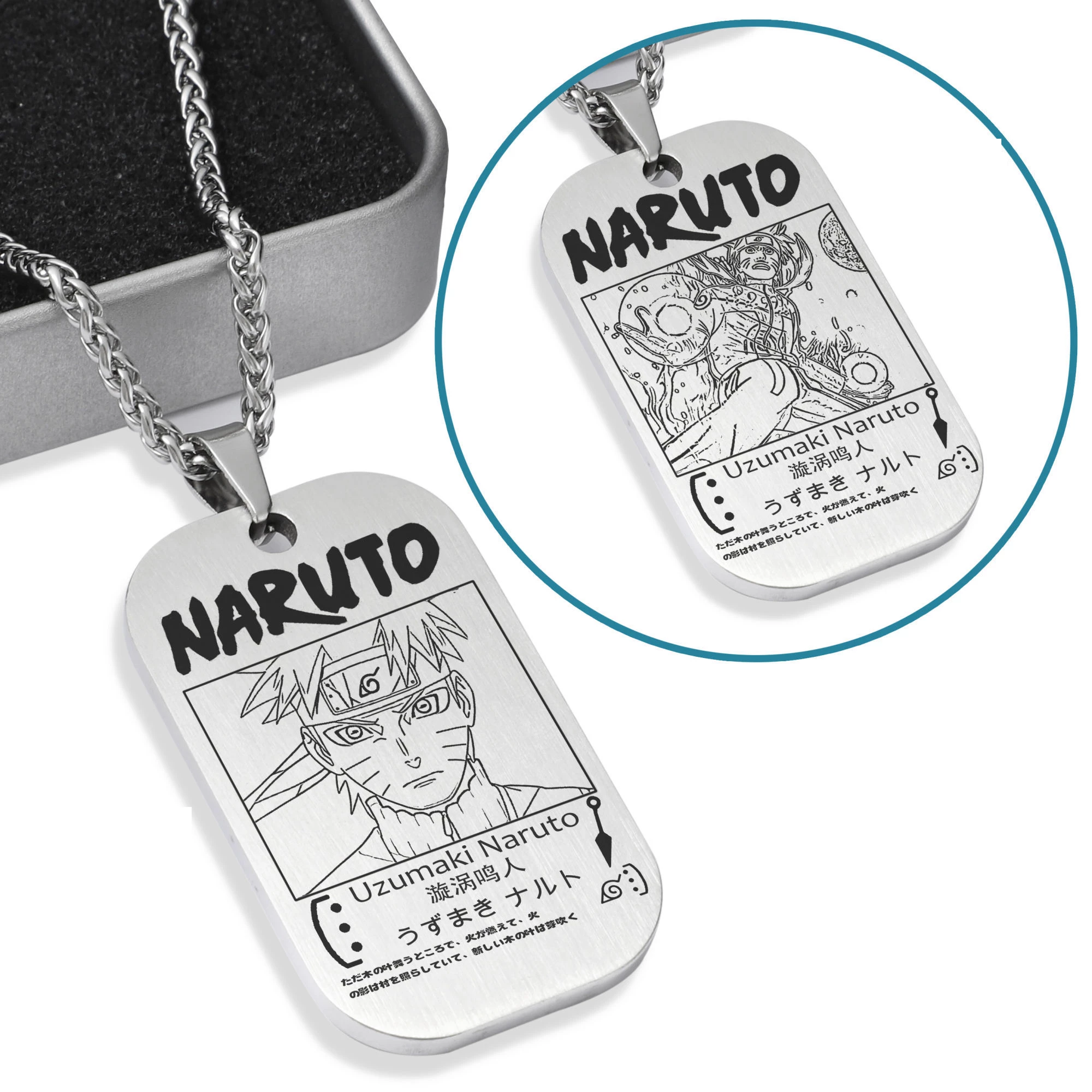 Featuring character from Naruto at the front and back respectively.