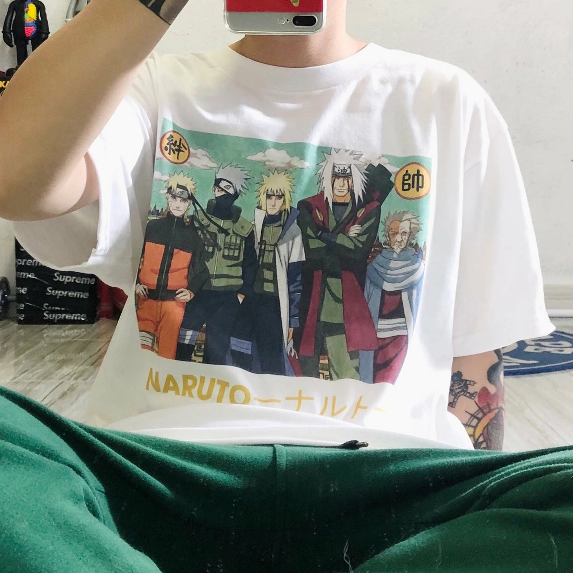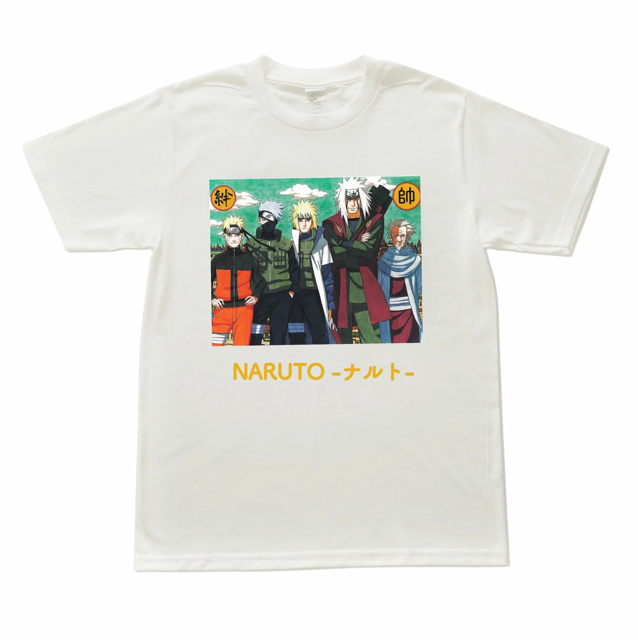 Featuring five strong ninjas on front center. From left to right, it prints Uzumaki, Kakashi, Minato Namikaze, Jiraiya and Hiruzen Sarutobi.