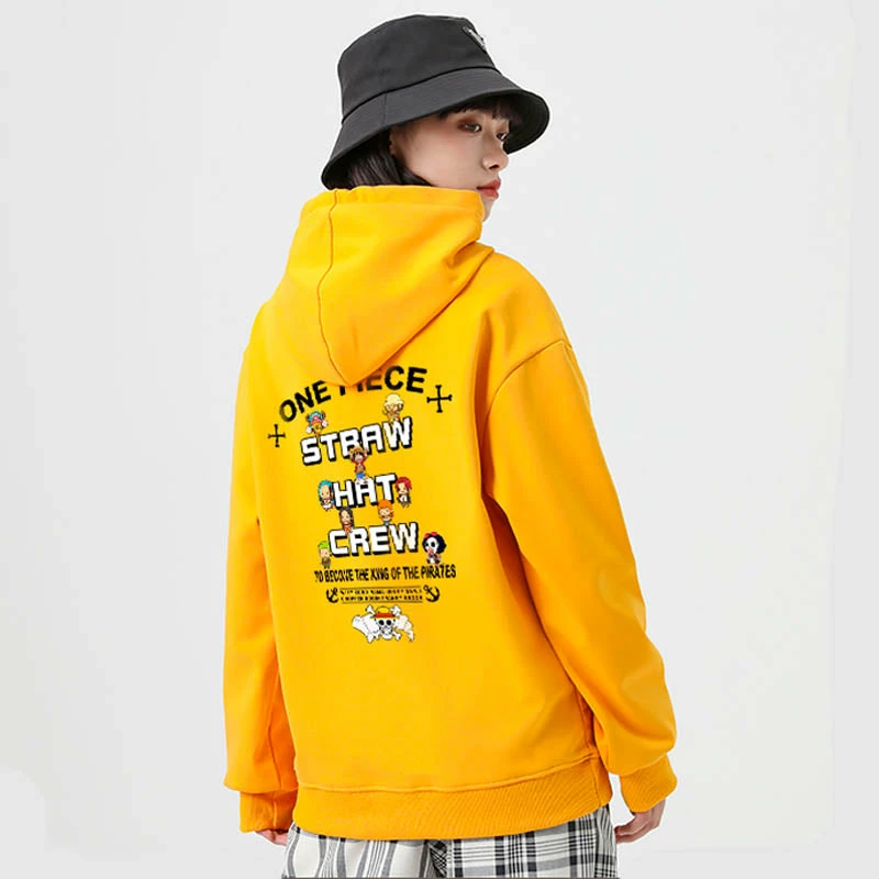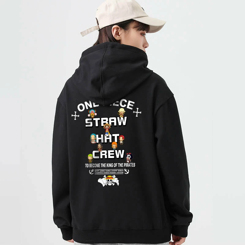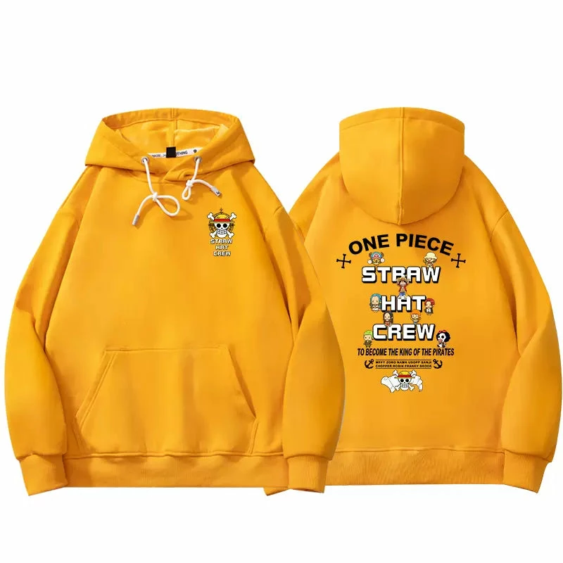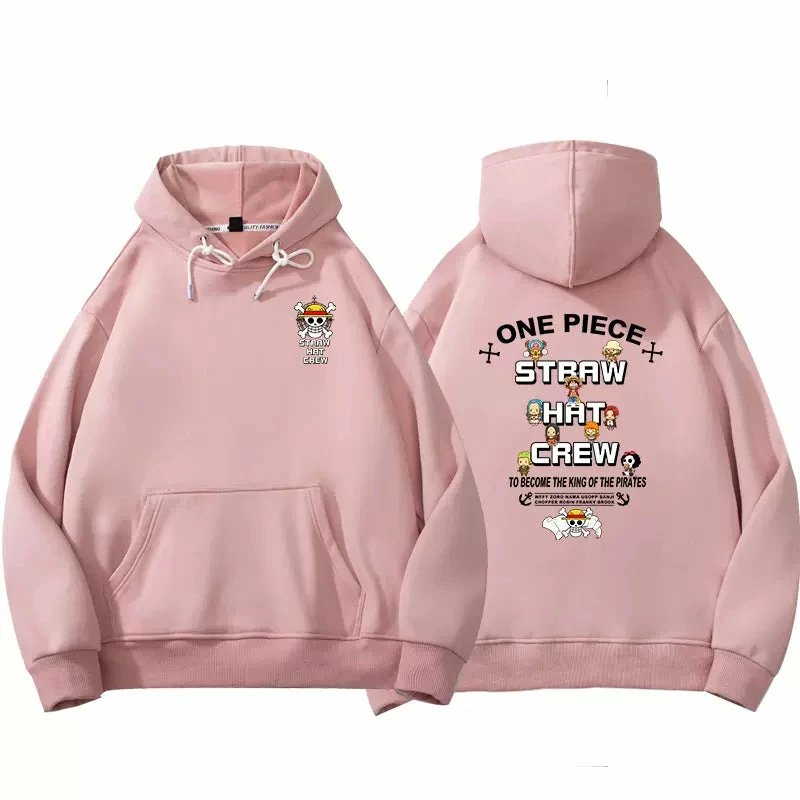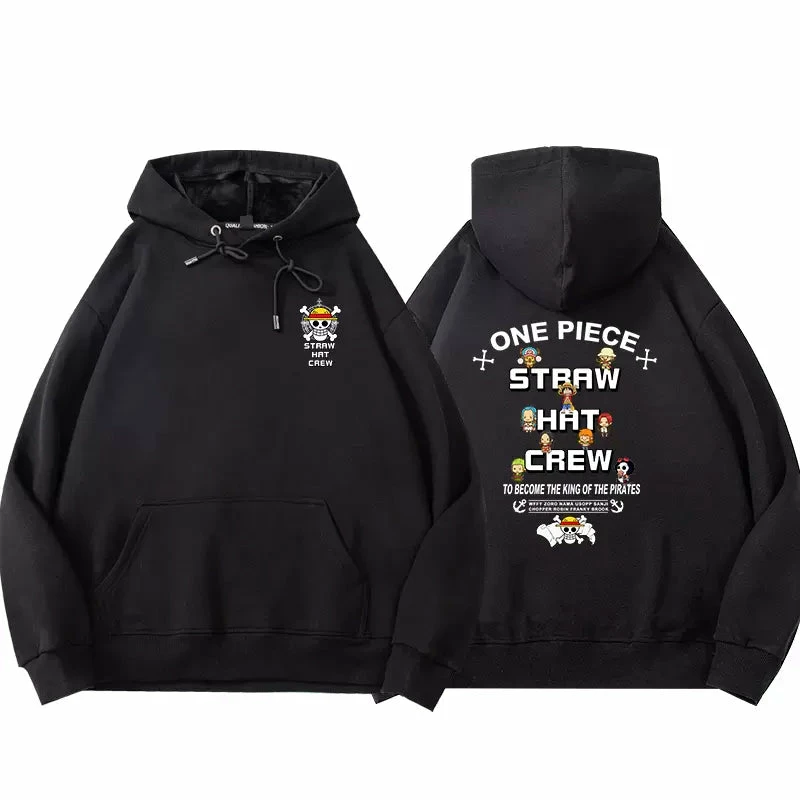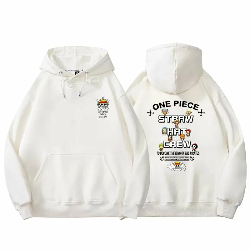 Featuring the straw hat logo with all chibi characters from One Piece around. Printings on both back and chest front.