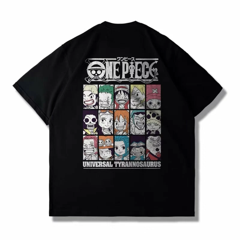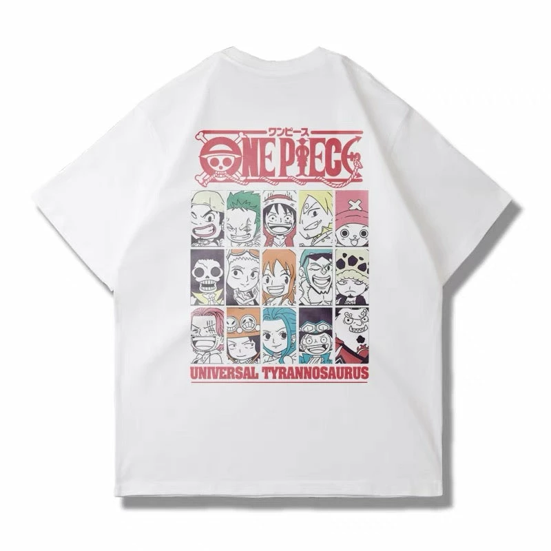 Grid style featuring all characters from One Piece anime and the front center printing is the One Piece logo.