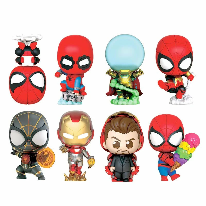 Spider-Man Cosbi Bobble-head collection features our neighborhood Spider-Man in different battle suits including Integrated Suit, Black & Gold Suit, Upgraded Suit, Homemade Suit, also Half masked Spider-Man, Mysterio, Iron Man Mark XLVII, Tony Stark and an exclusive version Cosbi. Each random package box includes a 7.5cm tall Cosbi collectible of your favorite characters, a special collection card, and a connectable puzzle base, comes sealed in a foil bag and blind boxed to preserve the rarity and collectability of the series. Available in selected markets only.