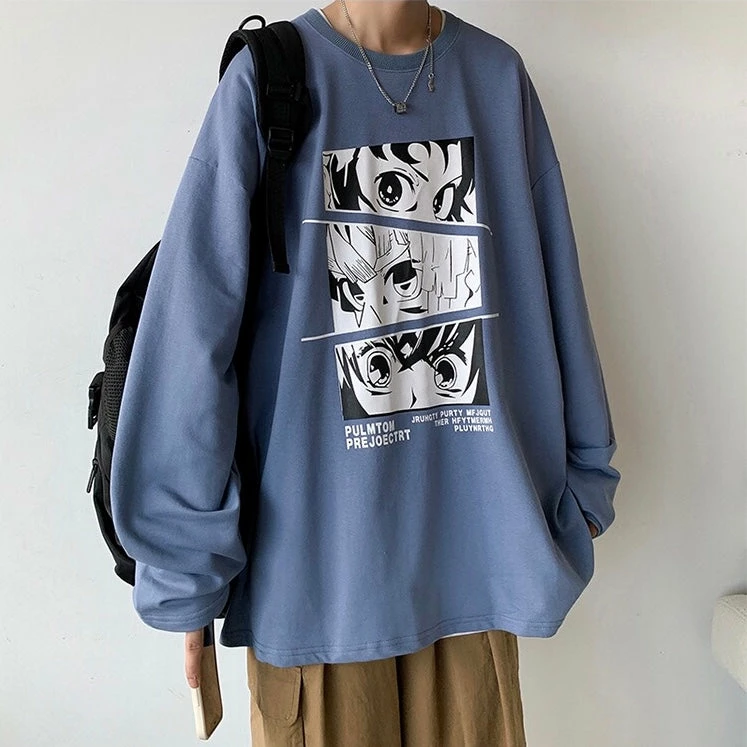 Black and white graphic of Tanjiro, Zenitsu & Giyu’s eyes on front center. Back is blank.