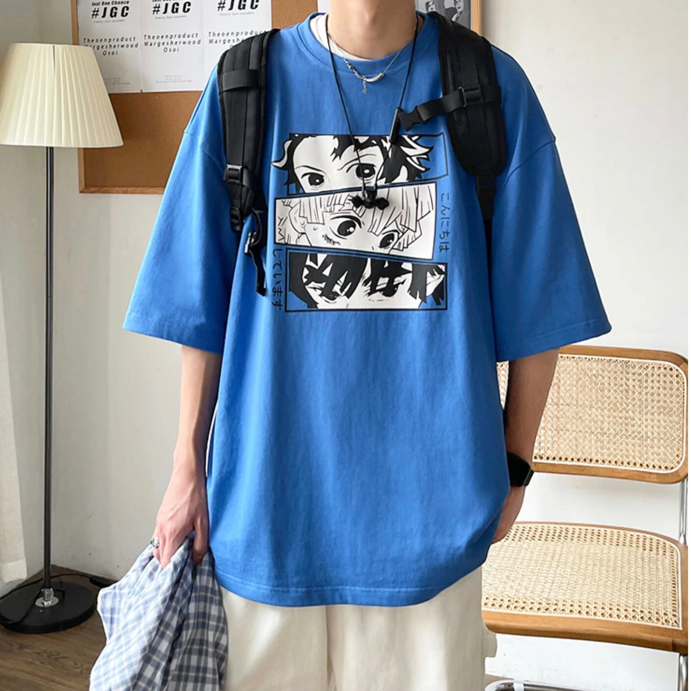 Black and white graphic of Tanjiro, Zenitsu & Giyu’s eyes on front center. Back is blank.