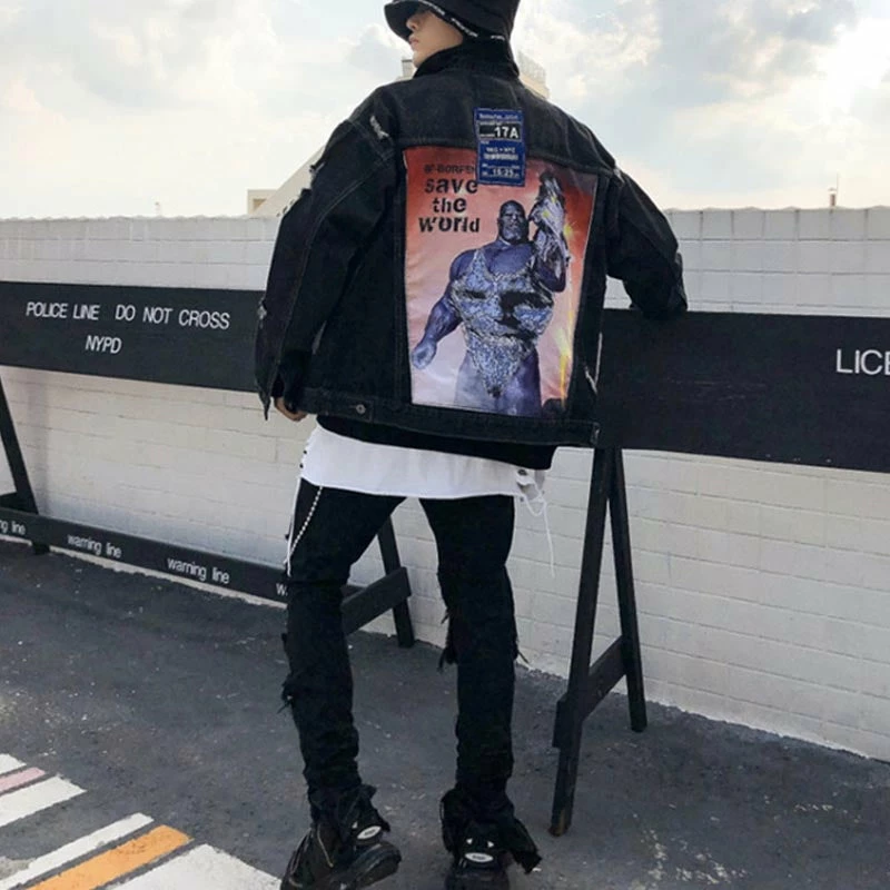 Featuring Thanos with Infinity Gauntlet printed at back as well as Thanos’ willing “Save the world”.
